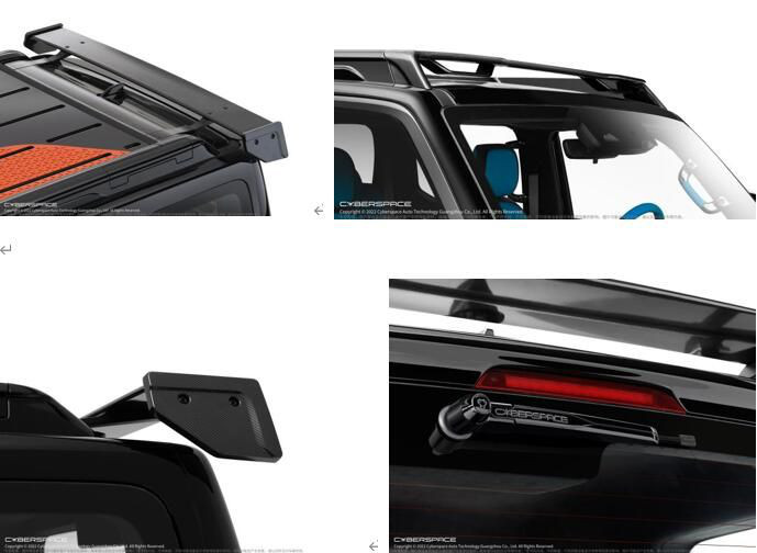 传统产品车顶只预留行李架,无额外功能,用户需额外购买配件、加装车顶框才能实现功能拓展,而赛博骑士自带可拓展一体式车顶平台,采用集成内置滑轨的别致设计,搭载前后双碳纤维翼,强度升级的同时更提升NVH与动态稳定性,功能性与空气动力学性能兼备,有型更有势,乐享千人千面的装载方式,让每一个独立的自我都得到饱满的诠释。