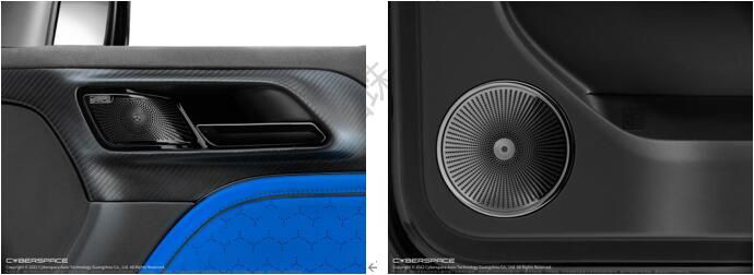 车载音响由CYBERSPACE旗下专业HiFi工作室匠心调校,宽裕声场配合静谧空间,营造身临其境的剧场感。CYBERSPACE为赛博玩家们打造了一个移动的录音室,带来非同凡响的聆听体验。