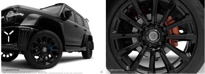 出色的公路性能和全地形能力,在此皆可兼得。赛博骑士配有21英寸锻造轮毂,由高强度铝合金锻造切削而成,带来更轻的簧下质量、将整车的操控性和安全性同时提升,为用户的全场景驾驶提供更好的质感及保障。