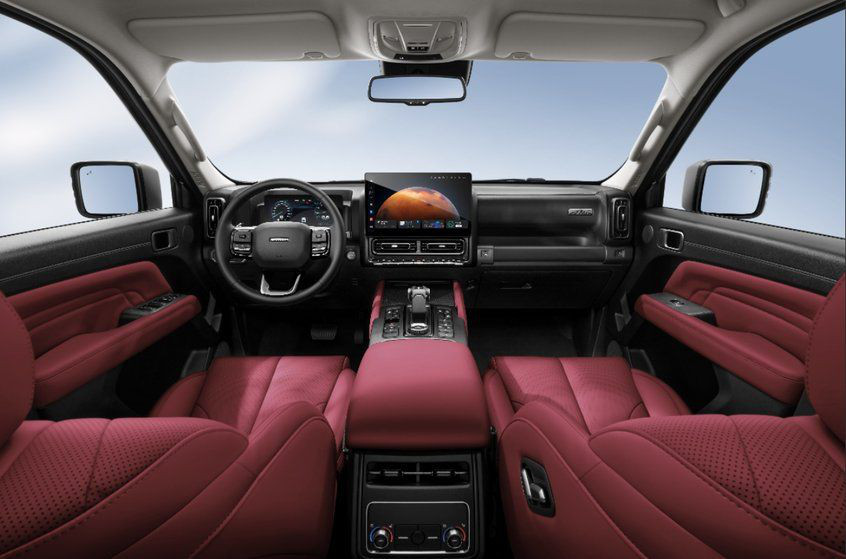 内饰方面,延续现款车型设计的同时,新增了熔岩红配色,为车内增添了一份活力与激情。中控区域配备的14.6英寸中控多媒体显示屏,相比老款系统,在操作流畅度、功能丰富度上或将有明显提升。后备厢220V电源由原车型的150W提升至400W,露营照明、野外办公都能轻松解决。这些升级,从越野性能到内饰体验,全方位满足了消费者对于硬派越野车的更高需求。
