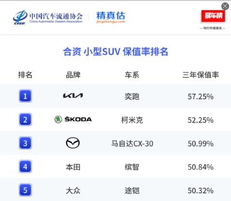 近日,中国汽车流通协会联合汽车数据服务平台精真估发布了《2025年度中国汽车保值率研究报告》,起亚奕跑三年保值率依然高达57.25%,稳居合资品牌第一、全系车型第二,进一步验证了消费者对其品质的认可与信赖。