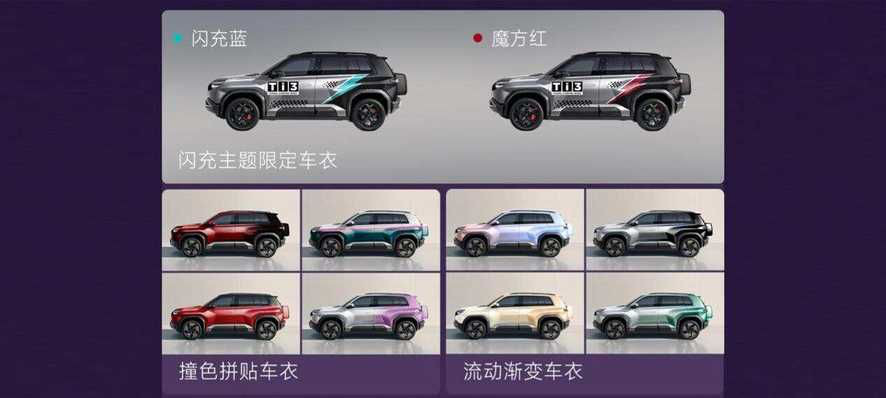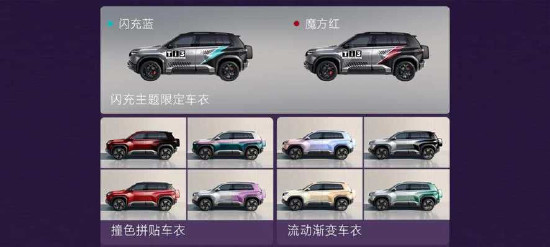 为满足用户的个性化需求,闪充版正式推出新外观色「星尘紫」,新内饰色「灰蓝双拼」,还有14种潮改方案及16种小书包轻潮改方案,让每一位用户都能尽情展示自我。