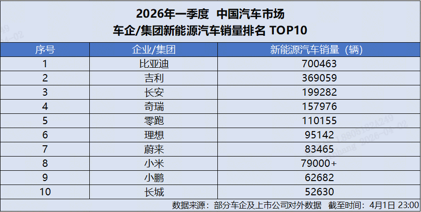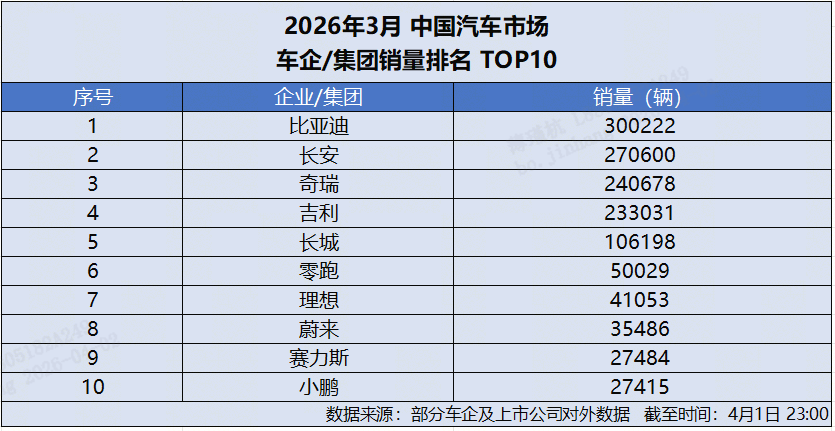 【华中汽车网】4 月 1 日,比亚迪发布 2026 年 3 月产销数据,单月总销量达300222 辆,强势突破 30 万辆大关,再添荣耀战绩,斩获中国车企销量冠军,并连续 58 个月蝉联中国新能源汽车销量冠军,持续稳固行业龙头地位。截至目前,比亚迪新能源汽车累计销量已超1580 万辆,一季度累计销售 700463 辆,以硬核数据印证技术与规模双重实力。