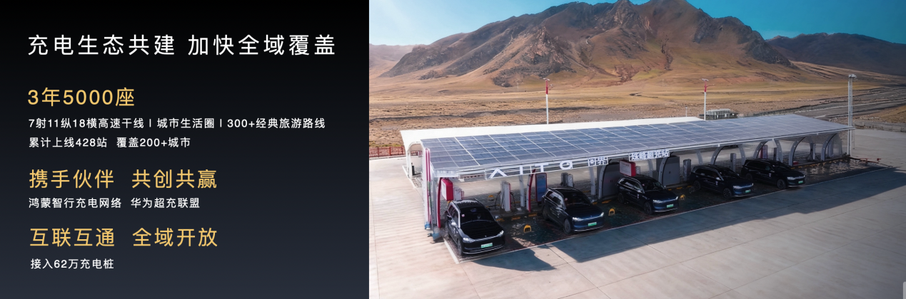 问界持续升级智享服务,首创数智维修车间、AI主动服务、亲友同享礼遇、星夜服务免费取送,移动服务已在全国主要城市实现覆盖,为用户提供全周期便捷用车守护。与鸿蒙智行共创共建充电网络,计划三年内建设超过5000座充换电站,目前累计上线428座,覆盖超过两百多个城市,让用户出行无忧、充电更便捷。